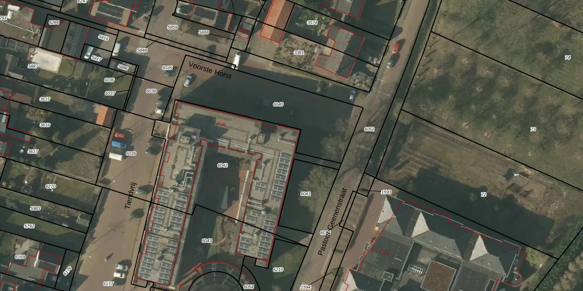 Het perceel waarop Voorste Horst 38 staat heeft een oppervlakte van 1700 m². Dit is een zeer groot perceel. De perceeloppervlakte wordt geregistreerd door het Kadaster. Gedetailleerde informatie over de maten van dit perceel kunt u vinden in het rapport Kadastrale kaart met maatvoering van Voorste Horst 38.