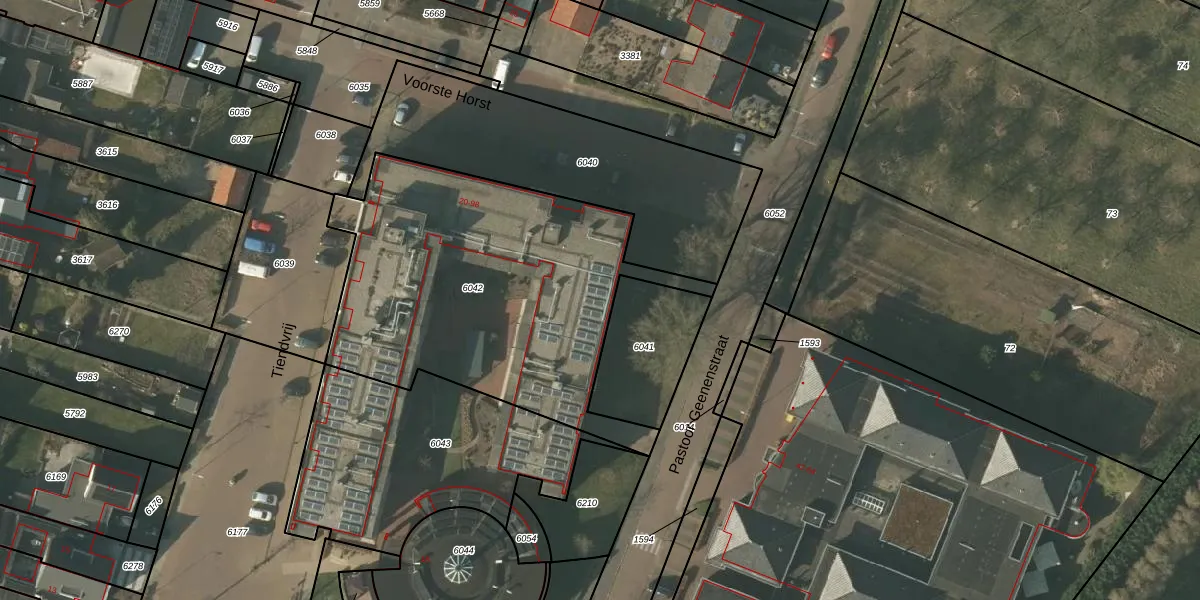Het perceel waarop Voorste Horst 40 staat heeft een oppervlakte van 1700 m². Dit is een zeer groot perceel. De perceeloppervlakte wordt geregistreerd door het Kadaster. Gedetailleerde informatie over de maten van dit perceel kunt u vinden in het rapport Kadastrale kaart met maatvoering van Voorste Horst 40.