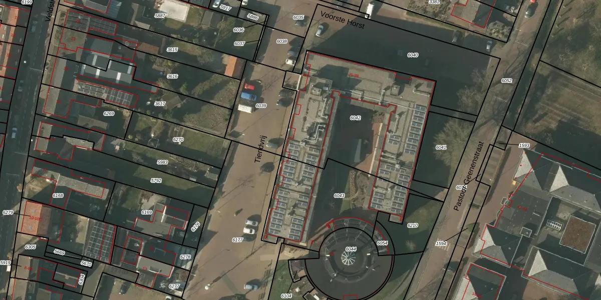 Voorste Horst 54 is gelegen op kadastraal perceel MBE00C6042. Deze kadastrale aanduiding is uniek en wordt gebruikt door het Kadaster om eigendomsrechten en andere zakelijke rechten vast te leggen. Het perceel maakt onderdeel uit van de kadastrale gemeente Maasbree.