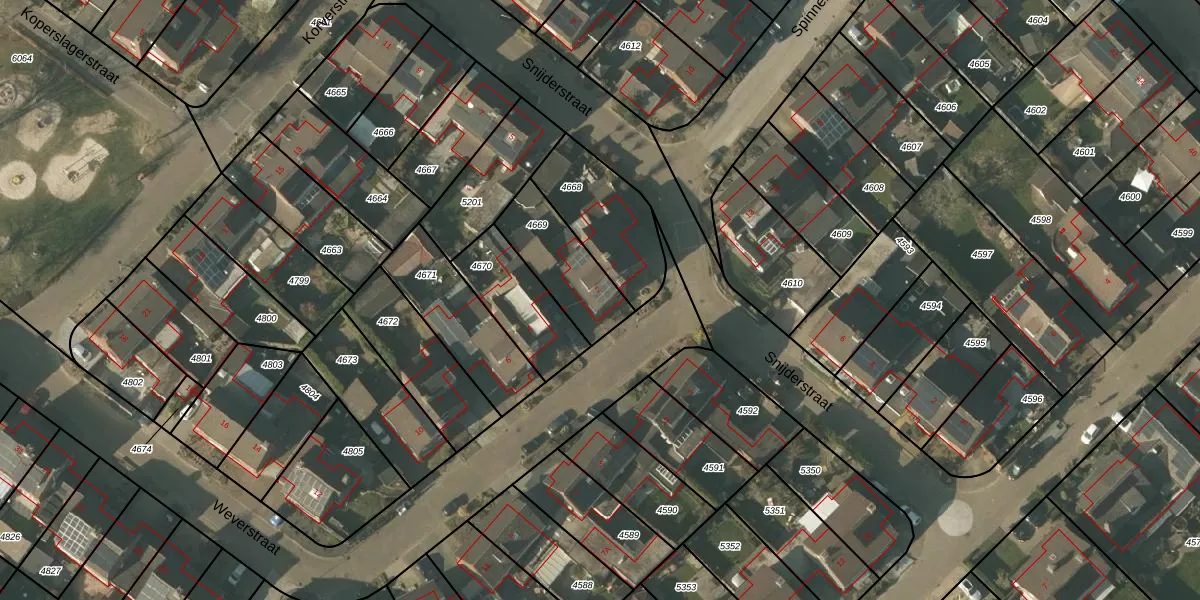 Het perceel waarop Weverstraat 2 staat heeft een oppervlakte van 259 m². Dit is een middelgroot perceel. De perceeloppervlakte wordt geregistreerd door het Kadaster. Gedetailleerde informatie over de maten van dit perceel kunt u vinden in het rapport Kadastrale kaart met maatvoering van Weverstraat 2.