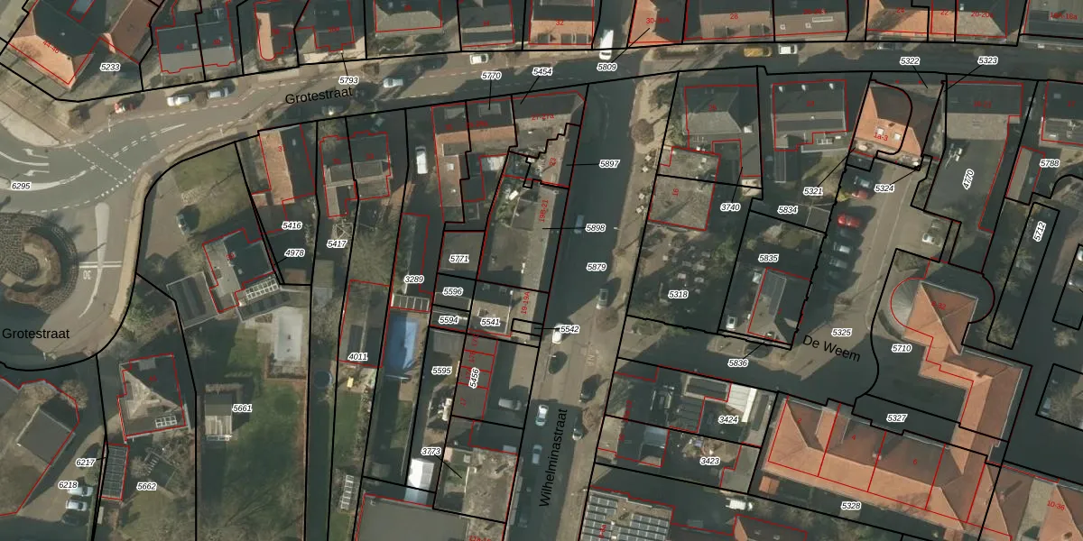 Wilhelminastraat 19-B is gelegen op kadastraal perceel MBE00C5898. Deze kadastrale aanduiding is uniek en wordt gebruikt door het Kadaster om eigendomsrechten en andere zakelijke rechten vast te leggen. Het perceel maakt onderdeel uit van de kadastrale gemeente Maasbree.