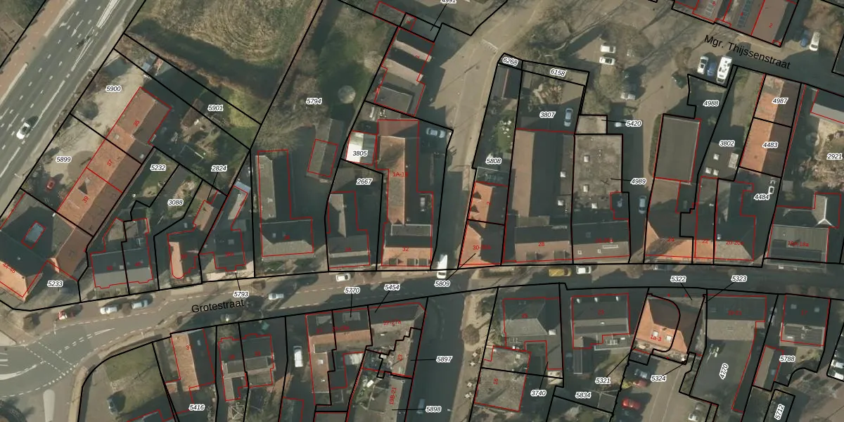 Het perceel waarop het adres ligt is MBE00-C-3805. De afkorting 'MBE00' staat voor kadastrale gemeente Maasbree. Het perceel is kleiner dan gemiddeld in Maasbree. Het perceel is 665 m² groot, terwijl het gemiddelde ligt op 4472,14 m². De grootste perceeloppervlakte in de kadastrale gemeente is 26,2 ha. De kleinste oppervlakte bedraagt 0 m². Op het perceel zijn 3 adressen aanwezig. De huidige grenzen van het perceel zijn digitaal in de Basisregistratie Kadaster (BRK) geregistreerd op 10-03-2008.
