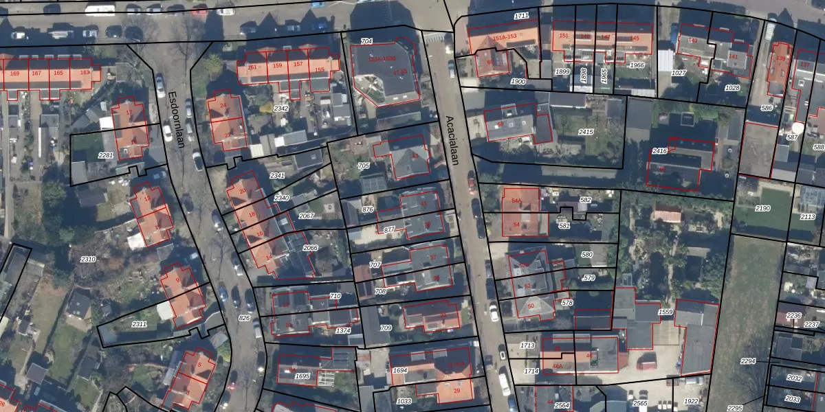 Het perceel waarop Acacialaan 41 staat heeft een oppervlakte van 195 m². Dit is een middelgroot perceel. De perceeloppervlakte wordt geregistreerd door het Kadaster. Gedetailleerde informatie over de maten van dit perceel kunt u vinden in het rapport Kadastrale kaart met maatvoering van Acacialaan 41.