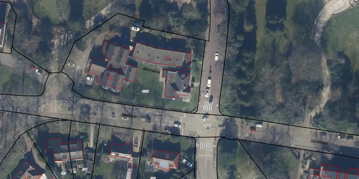 Het perceel waarop Alcmaria 34 staat heeft een oppervlakte van 3161 m². Dit is een zeer groot perceel. De perceeloppervlakte wordt geregistreerd door het Kadaster. Gedetailleerde informatie over de maten van dit perceel kunt u vinden in het rapport Kadastrale kaart met maatvoering van Alcmaria 34.