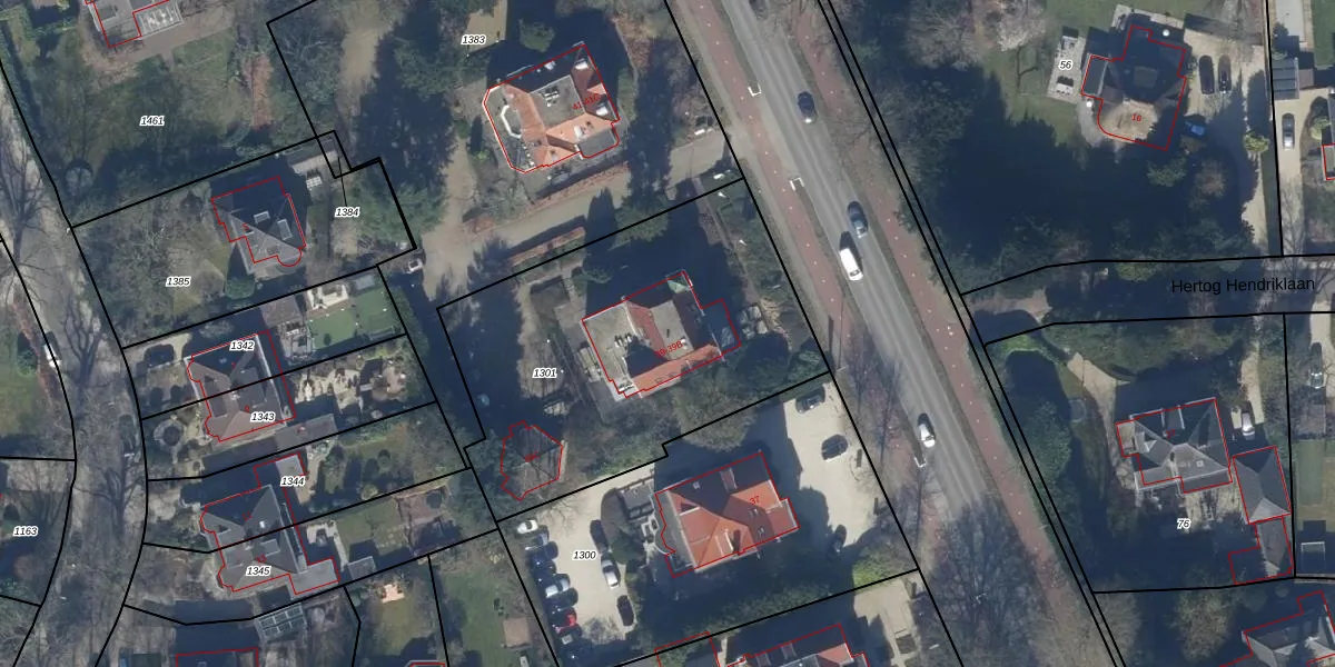 Het adres ligt op het perceel BAA01-C-1301, dat zich in de kadastrale gemeente Baarn bevindt. Het perceel is 1671 m² groot. Dat is kleiner dan de gemiddelde perceeloppervlakte in Baarn, dat op 3286,82 m² ligt. Het grootste perceel in de kadastrale gemeente is 84,4 ha. Het kleinste perceel heeft een oppervlakte van 0 m². Op het perceel zijn 4 adressen aanwezig. De huidige grenzen van het perceel zijn digitaal in de Basisregistratie Kadaster (BRK) geregistreerd op 02-06-1999.