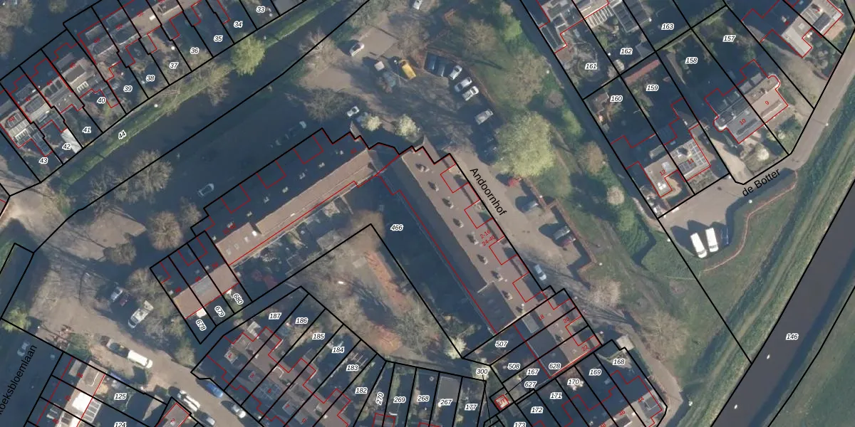 Het perceel waarop Andoornhof 28 staat heeft een oppervlakte van 2111 m². Dit is een zeer groot perceel. De perceeloppervlakte wordt geregistreerd door het Kadaster. Gedetailleerde informatie over de maten van dit perceel kunt u vinden in het rapport Kadastrale kaart met maatvoering van Andoornhof 28.