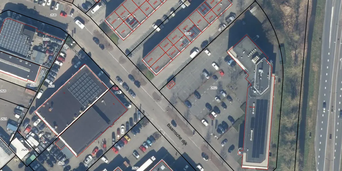 Baarnsche dijk 4-T1 is gelegen op kadastraal perceel BAA01H2512. Deze kadastrale aanduiding is uniek en wordt gebruikt door het Kadaster om eigendomsrechten en andere zakelijke rechten vast te leggen. Het perceel maakt onderdeel uit van de kadastrale gemeente Baarn.