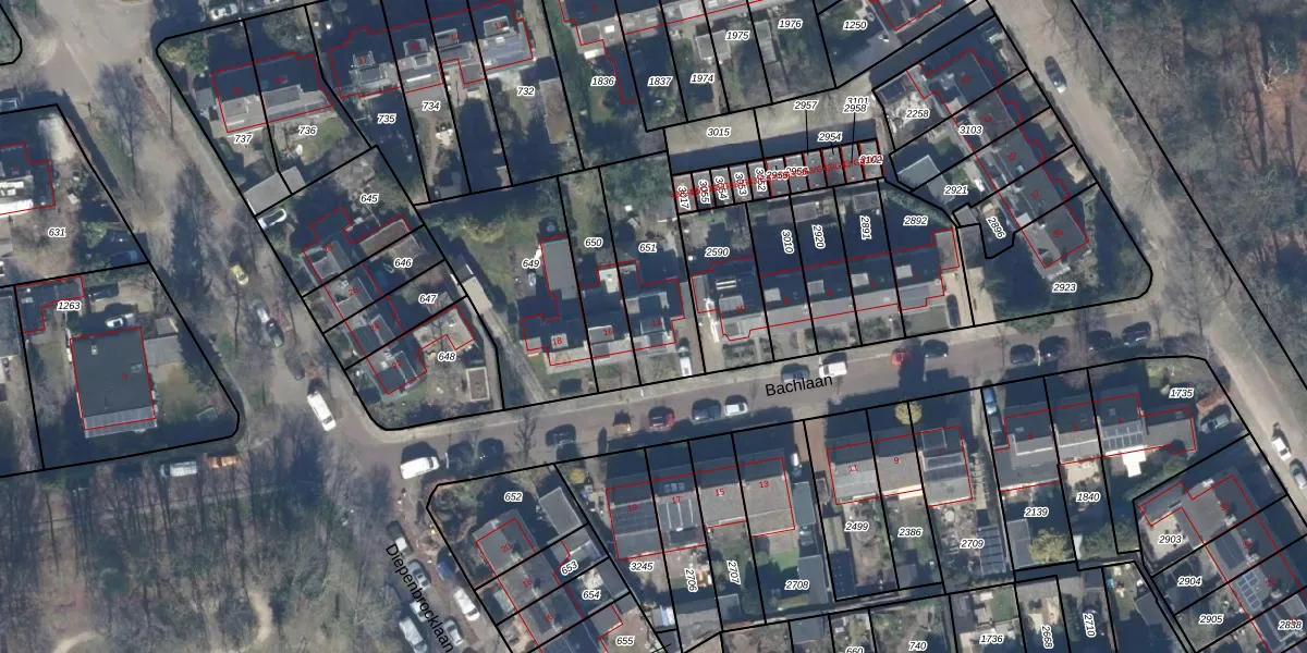 Het perceel waarop Bachlaan 14 staat heeft een oppervlakte van 365 m². Dit is een groot perceel. De perceeloppervlakte wordt geregistreerd door het Kadaster. Gedetailleerde informatie over de maten van dit perceel kunt u vinden in het rapport Kadastrale kaart met maatvoering van Bachlaan 14.