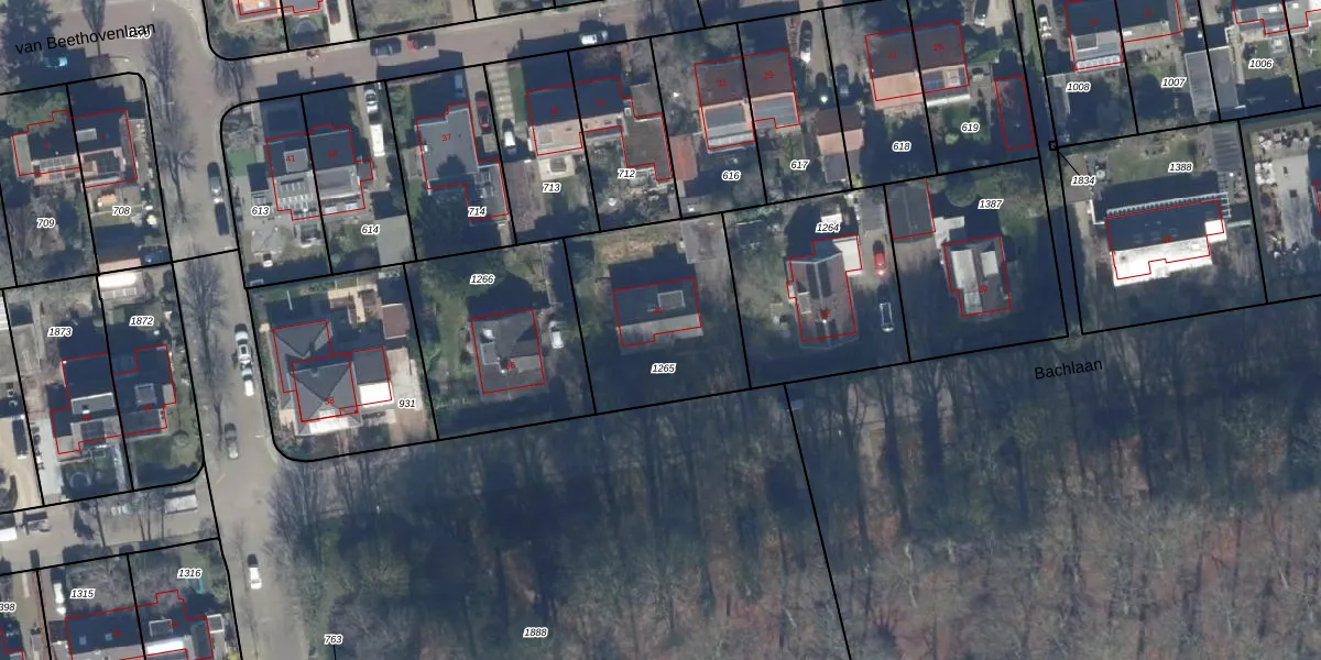 Het perceel waarop Bachlaan 34 staat heeft een oppervlakte van 667 m². Dit is een groot perceel. De perceeloppervlakte wordt geregistreerd door het Kadaster. Gedetailleerde informatie over de maten van dit perceel kunt u vinden in het rapport Kadastrale kaart met maatvoering van Bachlaan 34.