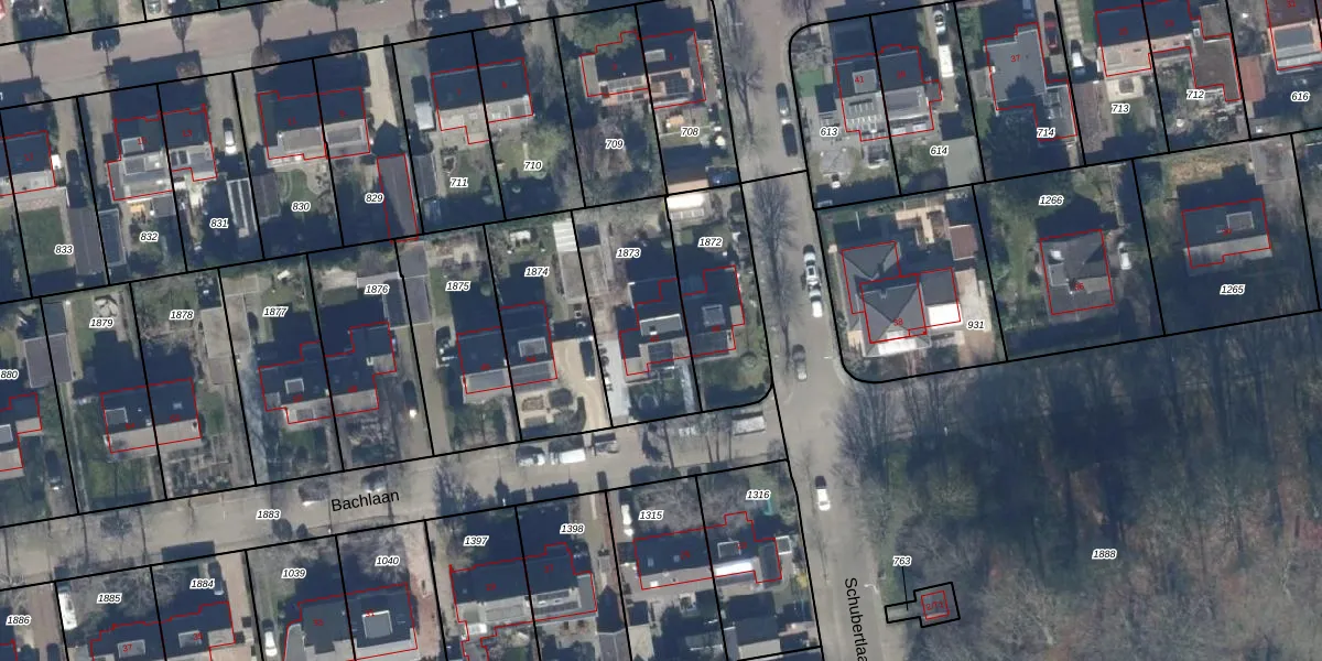 Het perceel waarop Bachlaan 42 staat heeft een oppervlakte van 457 m². Dit is een groot perceel. De perceeloppervlakte wordt geregistreerd door het Kadaster. Gedetailleerde informatie over de maten van dit perceel kunt u vinden in het rapport Kadastrale kaart met maatvoering van Bachlaan 42.