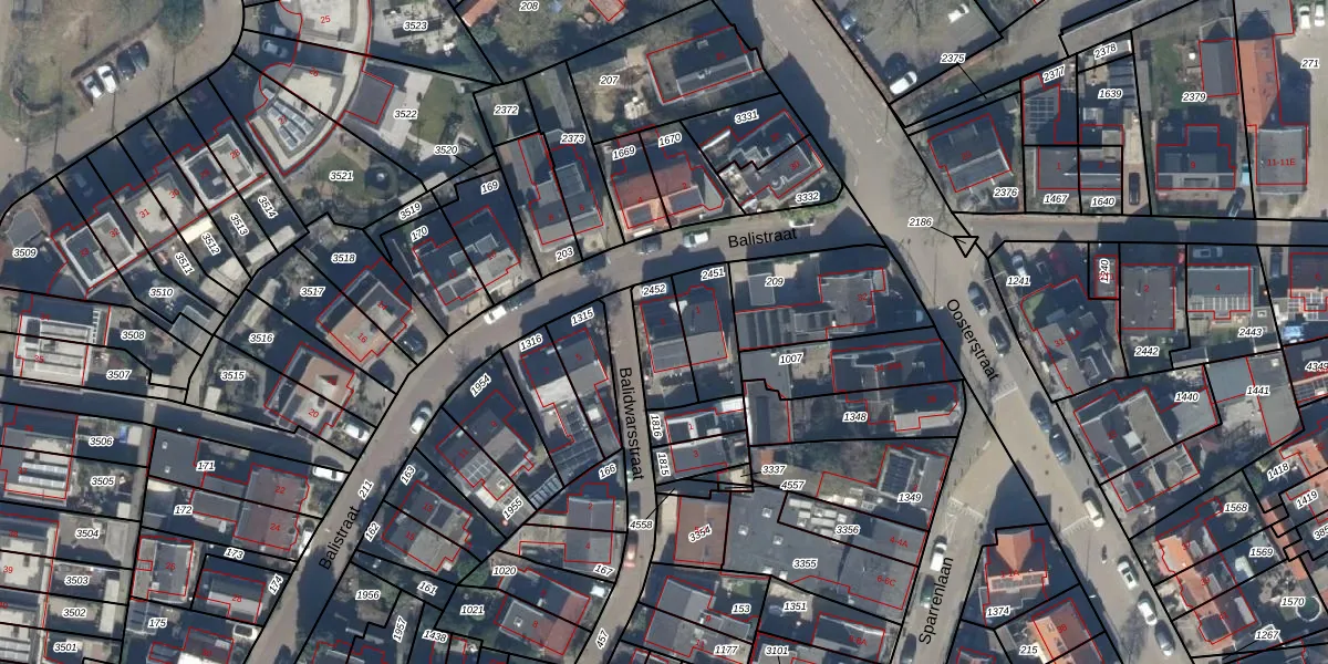 Gebruik de zoekbalk of klik op een perceel voor informatie over de adressen binnen dit perceel.