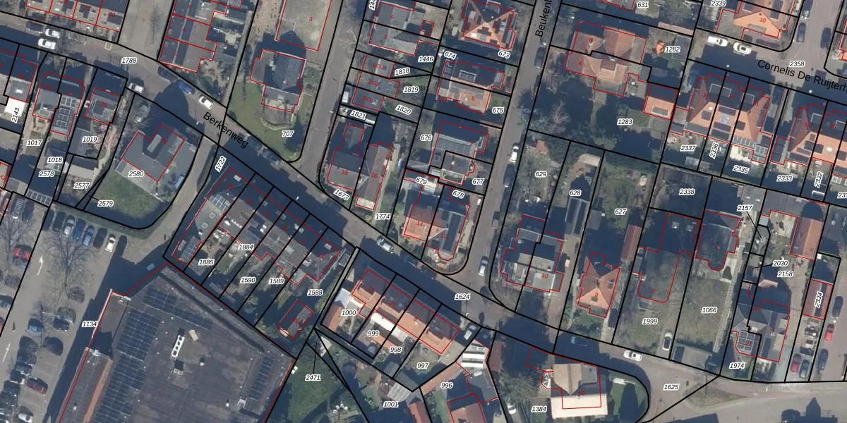 Gebruik de zoekbalk of klik op een perceel voor informatie over de adressen binnen dit perceel.