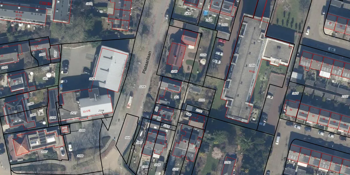 Gebruik de zoekbalk of klik op een perceel voor informatie over de adressen binnen dit perceel.