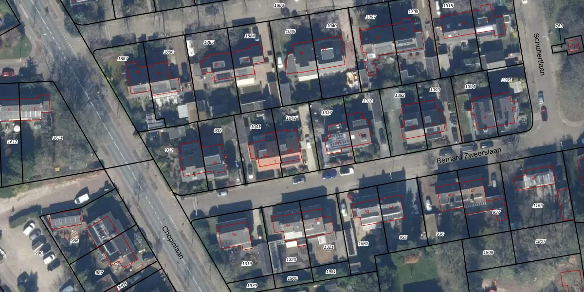 Gebruik de zoekbalk of klik op een perceel voor informatie over de adressen binnen dit perceel.