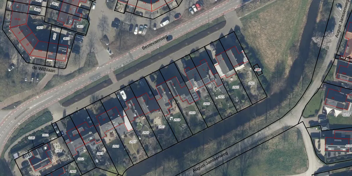 Bestevaerweg 9 is gelegen op kadastraal perceel BAA01M2919. Deze kadastrale aanduiding is uniek en wordt gebruikt door het Kadaster om eigendomsrechten en andere zakelijke rechten vast te leggen. Het perceel maakt onderdeel uit van de kadastrale gemeente Baarn.