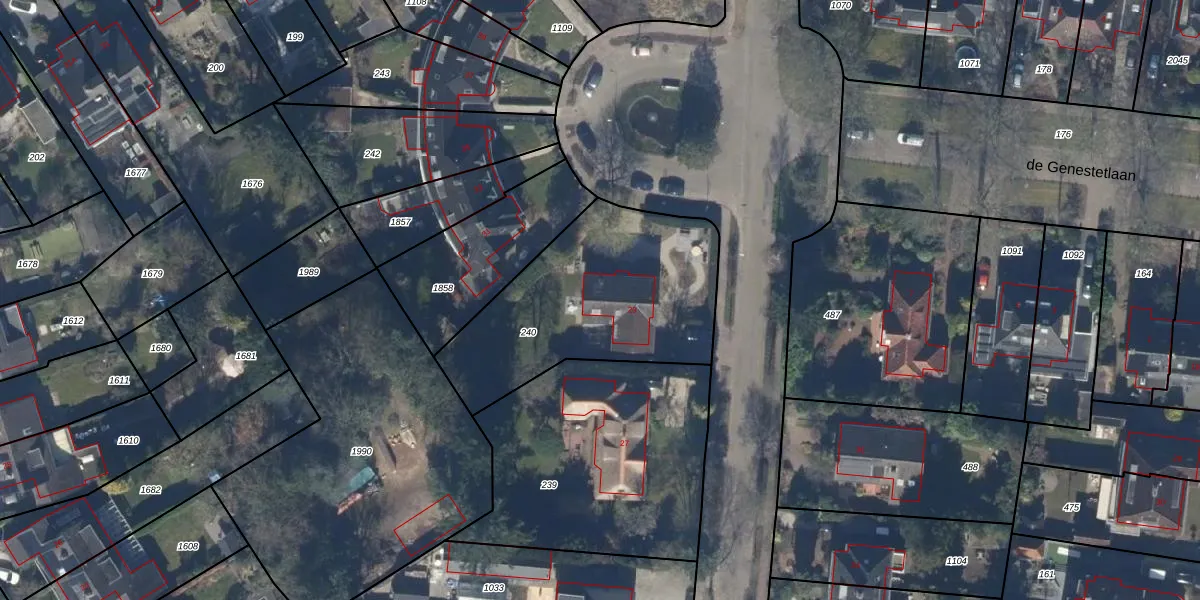 Gebruik de zoekbalk of klik op een perceel voor informatie over de adressen binnen dit perceel.