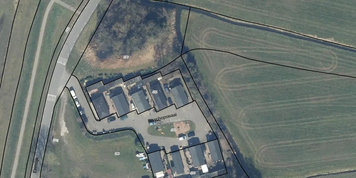 Het perceel waarop Bisschopswaai 5 staat heeft een oppervlakte van 1041 m². Dit is een zeer groot perceel. De perceeloppervlakte wordt geregistreerd door het Kadaster. Gedetailleerde informatie over de maten van dit perceel kunt u vinden in het rapport Kadastrale kaart met maatvoering van Bisschopswaai 5.