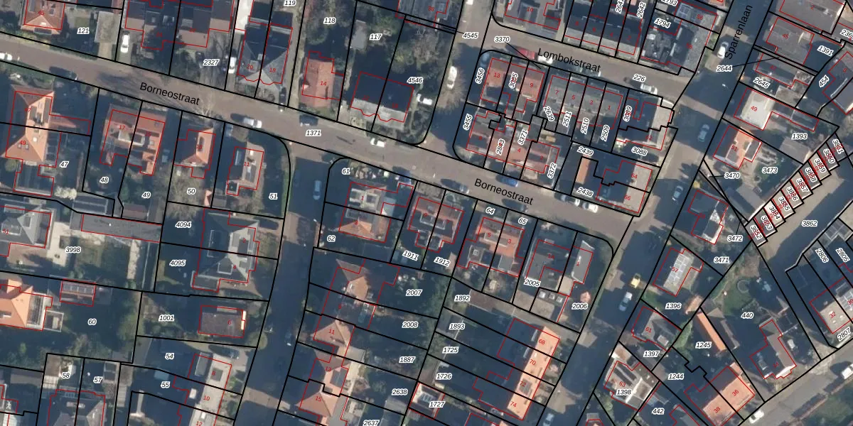 Borneostraat 9 is gelegen op kadastraal perceel BAA01M1911. Deze kadastrale aanduiding is uniek en wordt gebruikt door het Kadaster om eigendomsrechten en andere zakelijke rechten vast te leggen. Het perceel maakt onderdeel uit van de kadastrale gemeente Baarn.