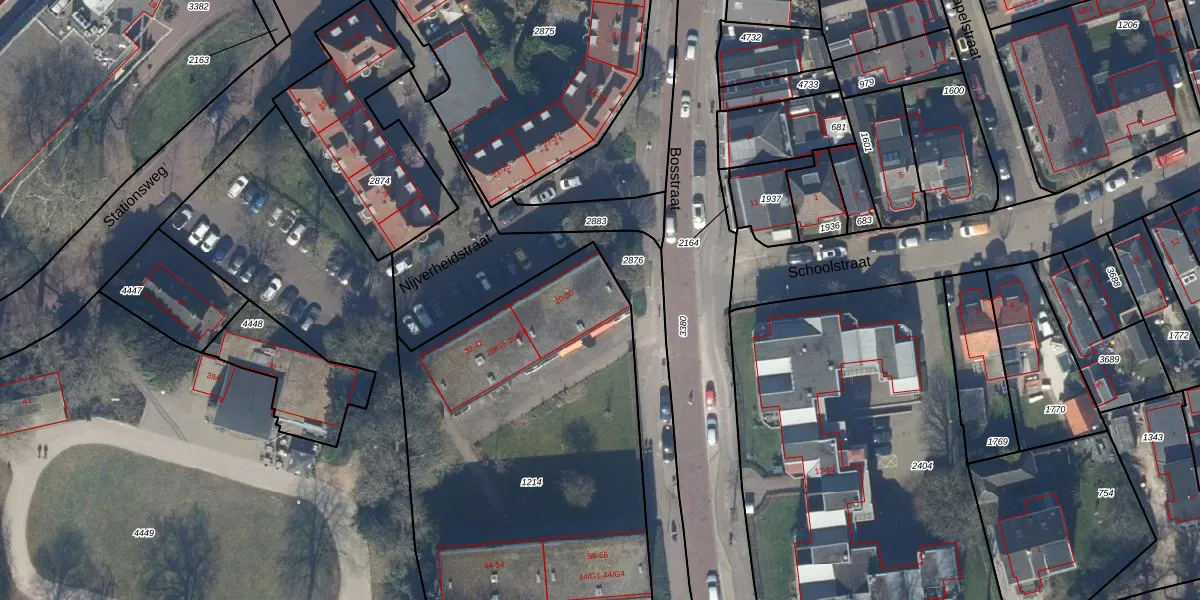 Bosstraat 20-G1 is gelegen op kadastraal perceel BAA01M1214. Deze kadastrale aanduiding is uniek en wordt gebruikt door het Kadaster om eigendomsrechten en andere zakelijke rechten vast te leggen. Het perceel maakt onderdeel uit van de kadastrale gemeente Baarn.