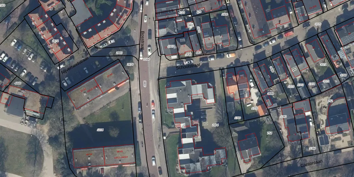 Het perceel waarop Bosstraat 27 staat heeft een oppervlakte van 2460 m². Dit is een zeer groot perceel. De perceeloppervlakte wordt geregistreerd door het Kadaster. Gedetailleerde informatie over de maten van dit perceel kunt u vinden in het rapport Kadastrale kaart met maatvoering van Bosstraat 27.