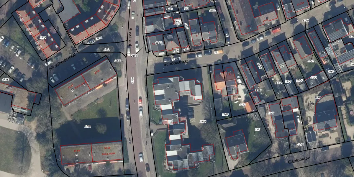Het perceel waarop Bosstraat 35 staat heeft een oppervlakte van 2460 m². Dit is een zeer groot perceel. De perceeloppervlakte wordt geregistreerd door het Kadaster. Gedetailleerde informatie over de maten van dit perceel kunt u vinden in het rapport Kadastrale kaart met maatvoering van Bosstraat 35.