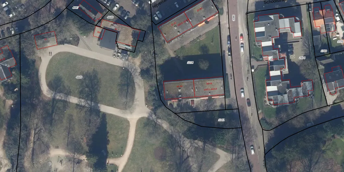 Het perceel waarop Bosstraat 44 staat heeft een oppervlakte van 2310 m². Dit is een zeer groot perceel. De perceeloppervlakte wordt geregistreerd door het Kadaster. Gedetailleerde informatie over de maten van dit perceel kunt u vinden in het rapport Kadastrale kaart met maatvoering van Bosstraat 44.