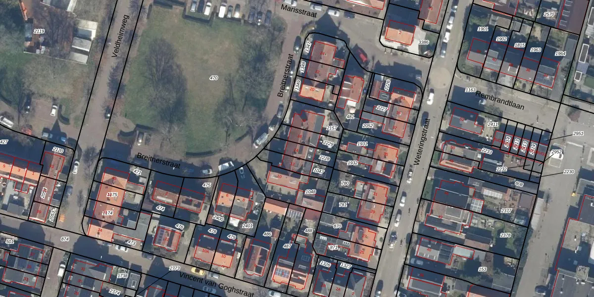 Het perceel waarop Breitnerstraat 14 staat heeft een oppervlakte van 112 m². Dit is een middelgroot perceel. De perceeloppervlakte wordt geregistreerd door het Kadaster. Gedetailleerde informatie over de maten van dit perceel kunt u vinden in het rapport Kadastrale kaart met maatvoering van Breitnerstraat 14.