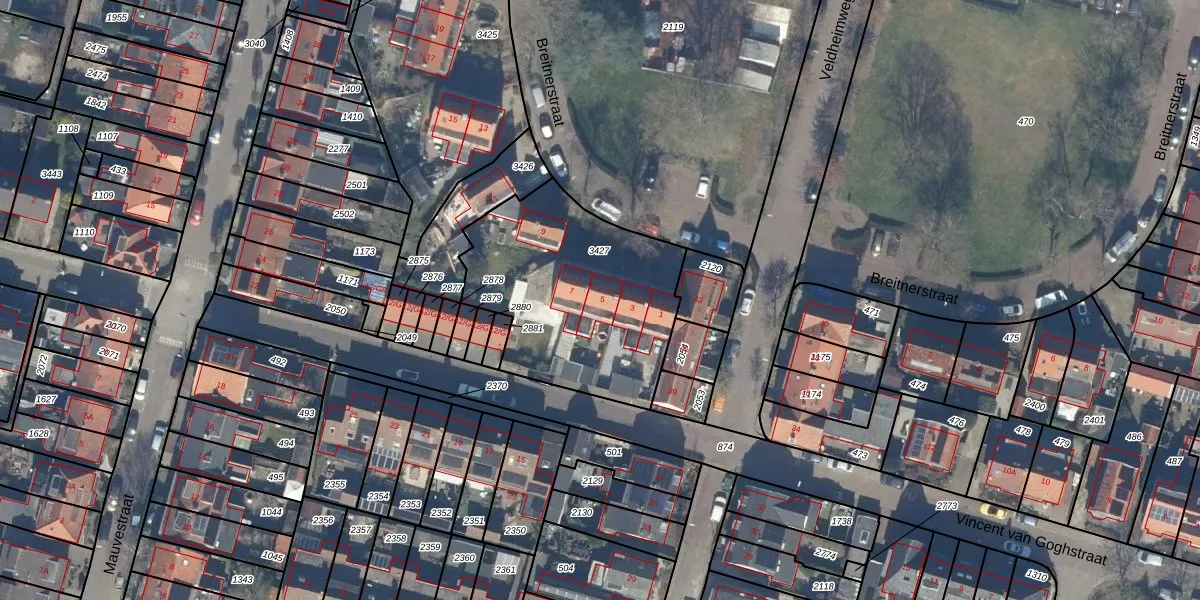 Het perceel waarop Breitnerstraat 5 staat heeft een oppervlakte van 945 m². Dit is een groot perceel. De perceeloppervlakte wordt geregistreerd door het Kadaster. Gedetailleerde informatie over de maten van dit perceel kunt u vinden in het rapport Kadastrale kaart met maatvoering van Breitnerstraat 5.