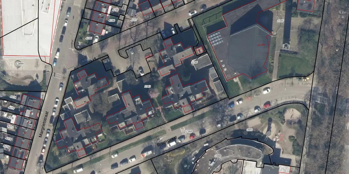 Het perceel waarop Bremstraat 117 staat heeft een oppervlakte van 4235 m². Dit is een zeer groot perceel. De perceeloppervlakte wordt geregistreerd door het Kadaster. Gedetailleerde informatie over de maten van dit perceel kunt u vinden in het rapport Kadastrale kaart met maatvoering van Bremstraat 117.