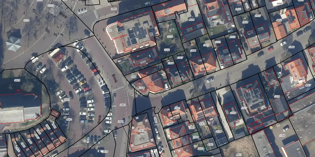 Het perceel waarop Brink 30 staat heeft een oppervlakte van 259 m². Dit is een middelgroot perceel. De perceeloppervlakte wordt geregistreerd door het Kadaster. Gedetailleerde informatie over de maten van dit perceel kunt u vinden in het rapport Kadastrale kaart met maatvoering van Brink 30.