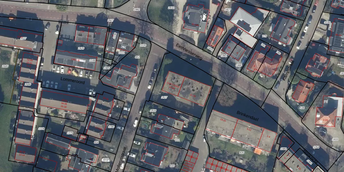 Het adres ligt op het perceel BAA01-L-1417, dat zich in de kadastrale gemeente Baarn bevindt. Het perceel is kleiner dan gemiddeld in Baarn. Het perceel is 916 m² groot, terwijl het gemiddelde ligt op 3282,24 m². Het kleinste perceel in de kadastrale gemeente is 0 m² groot. De grootste perceeloppervlakte is 84,4 ha. Er zijn 18 adressen aanwezig op het perceel. De laatste wijziging in het de Basisregistratie Kadaster (BRK) was op 19-10-2005.