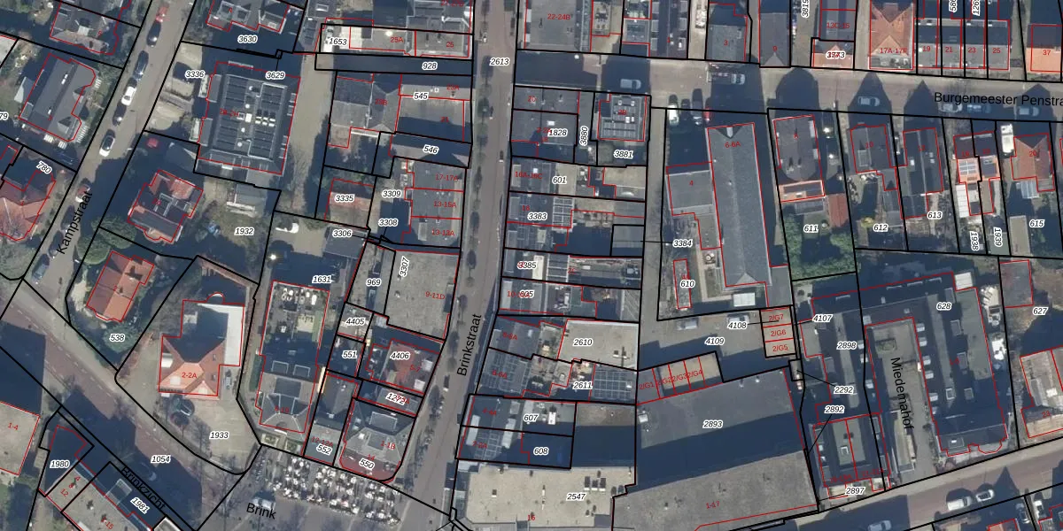 Brinkstraat 12 is gelegen op kadastraal perceel BAA01M3385. Deze kadastrale aanduiding is uniek en wordt gebruikt door het Kadaster om eigendomsrechten en andere zakelijke rechten vast te leggen. Het perceel maakt onderdeel uit van de kadastrale gemeente Baarn.