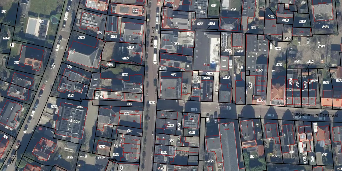 Het perceel waarop Brinkstraat 24-A staat heeft een oppervlakte van 321 m². Dit is een groot perceel. De perceeloppervlakte wordt geregistreerd door het Kadaster. Gedetailleerde informatie over de maten van dit perceel kunt u vinden in het rapport Kadastrale kaart met maatvoering van Brinkstraat 24-A.