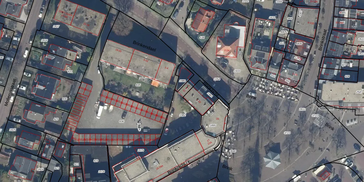 Het perceel waarop Brinkzicht 12 staat heeft een oppervlakte van 501 m². Dit is een groot perceel. De perceeloppervlakte wordt geregistreerd door het Kadaster. Gedetailleerde informatie over de maten van dit perceel kunt u vinden in het rapport Kadastrale kaart met maatvoering van Brinkzicht 12.