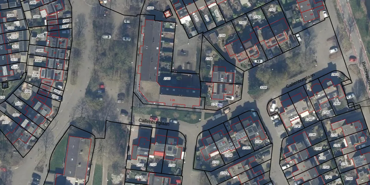 Callenburglaan 15 is gelegen op kadastraal perceel BAA01M2763. Deze kadastrale aanduiding is uniek en wordt gebruikt door het Kadaster om eigendomsrechten en andere zakelijke rechten vast te leggen. Het perceel maakt onderdeel uit van de kadastrale gemeente Baarn.