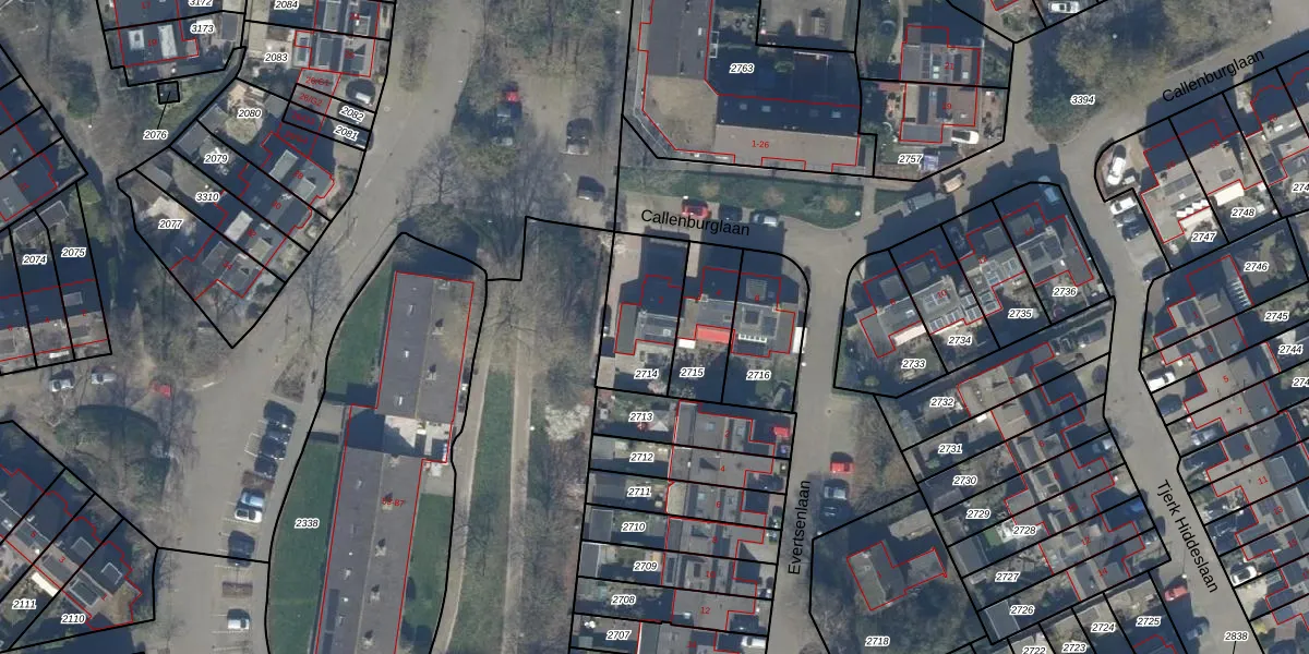 Callenburglaan 2 is gelegen op kadastraal perceel BAA01M2714. Deze kadastrale aanduiding is uniek en wordt gebruikt door het Kadaster om eigendomsrechten en andere zakelijke rechten vast te leggen. Het perceel maakt onderdeel uit van de kadastrale gemeente Baarn.