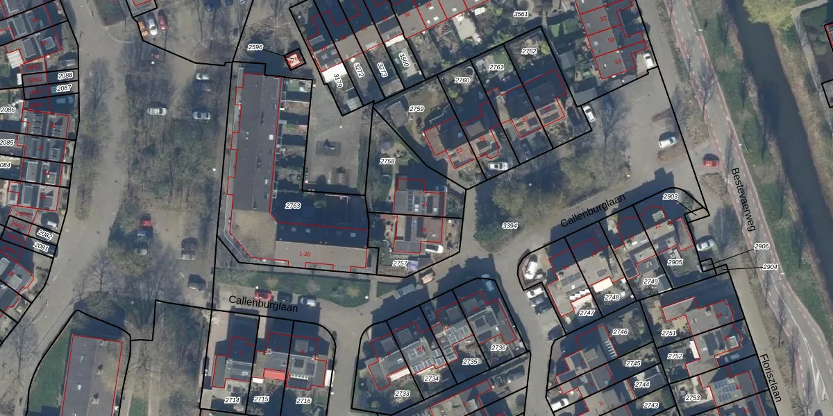 Callenburglaan 21 is gelegen op kadastraal perceel BAA01M2758. Deze kadastrale aanduiding is uniek en wordt gebruikt door het Kadaster om eigendomsrechten en andere zakelijke rechten vast te leggen. Het perceel maakt onderdeel uit van de kadastrale gemeente Baarn.