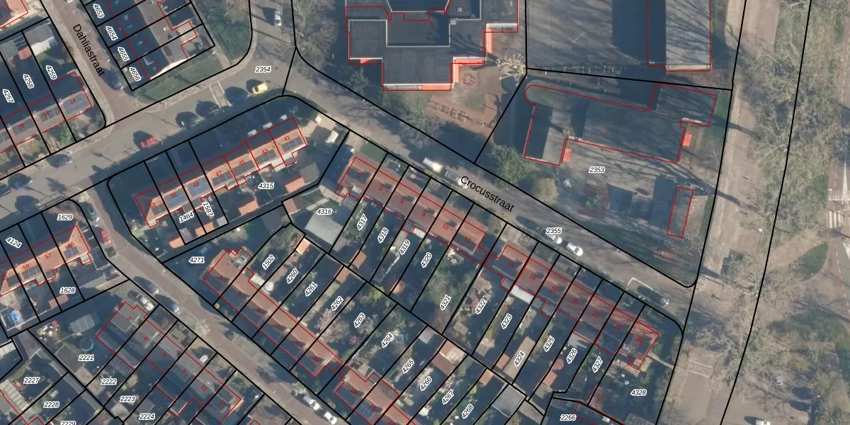 Gebruik de zoekbalk of klik op een perceel voor informatie over de adressen binnen dit perceel.