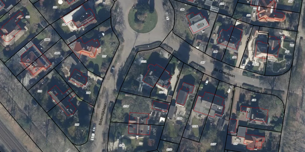 da Costalaan 9 is gelegen op kadastraal perceel BAA01L1171. Deze kadastrale aanduiding is uniek en wordt gebruikt door het Kadaster om eigendomsrechten en andere zakelijke rechten vast te leggen. Het perceel maakt onderdeel uit van de kadastrale gemeente Baarn.
