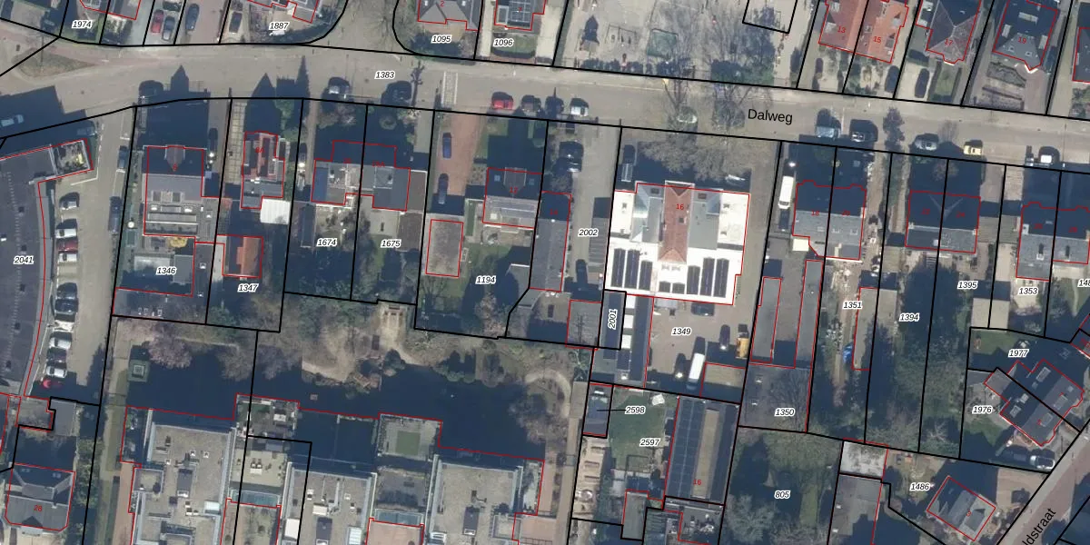 Het perceel waarop Dalweg 14 staat heeft een oppervlakte van 569 m². Dit is een groot perceel. De perceeloppervlakte wordt geregistreerd door het Kadaster. Gedetailleerde informatie over de maten van dit perceel kunt u vinden in het rapport Kadastrale kaart met maatvoering van Dalweg 14.