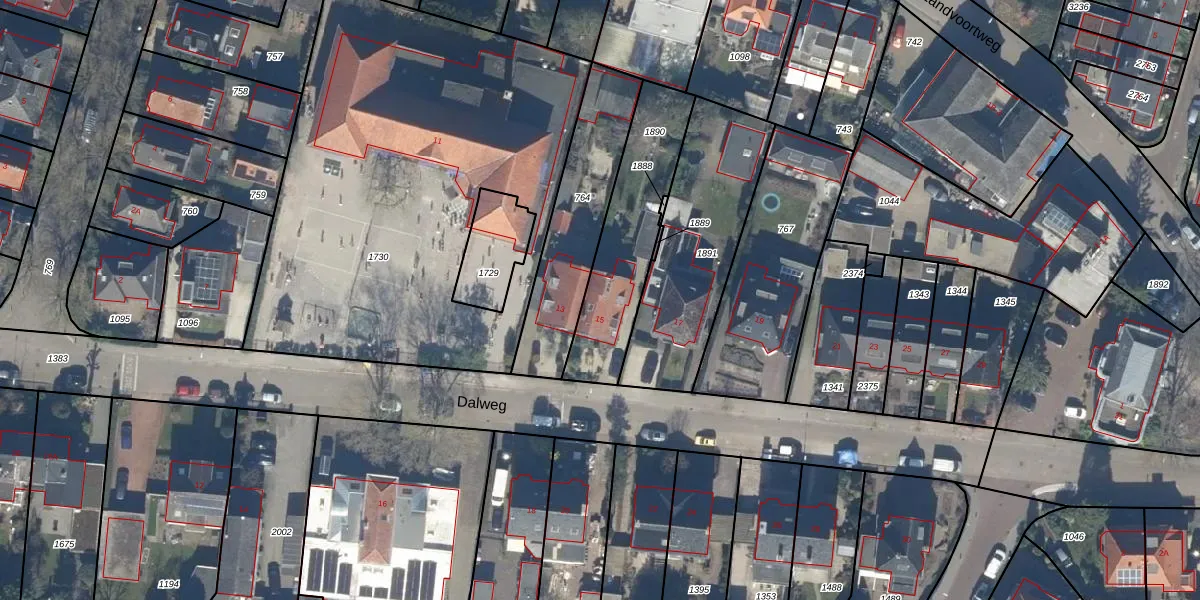 Het perceel waarop Dalweg 15 staat heeft een oppervlakte van 456 m². Dit is een groot perceel. De perceeloppervlakte wordt geregistreerd door het Kadaster. Gedetailleerde informatie over de maten van dit perceel kunt u vinden in het rapport Kadastrale kaart met maatvoering van Dalweg 15.