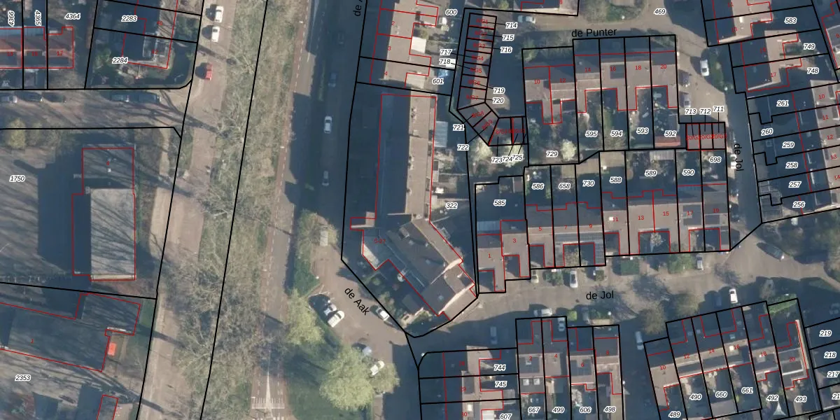 de Aak 18 is gelegen op kadastraal perceel BAA01N322. Deze kadastrale aanduiding is uniek en wordt gebruikt door het Kadaster om eigendomsrechten en andere zakelijke rechten vast te leggen. Het perceel maakt onderdeel uit van de kadastrale gemeente Baarn.