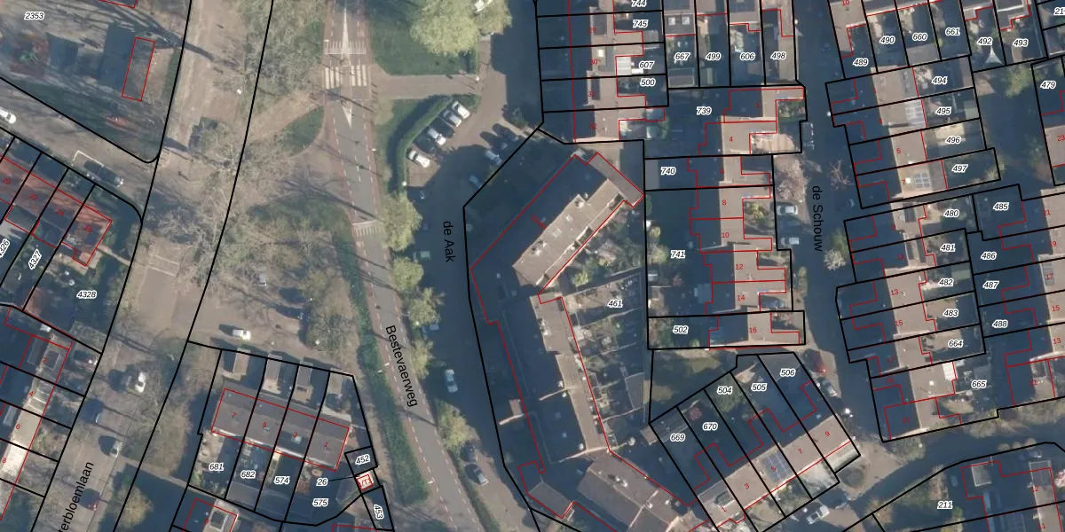 Het perceel waarop de Aak 49 staat heeft een oppervlakte van 2466 m². Dit is een zeer groot perceel. De perceeloppervlakte wordt geregistreerd door het Kadaster. Gedetailleerde informatie over de maten van dit perceel kunt u vinden in het rapport Kadastrale kaart met maatvoering van de Aak 49.