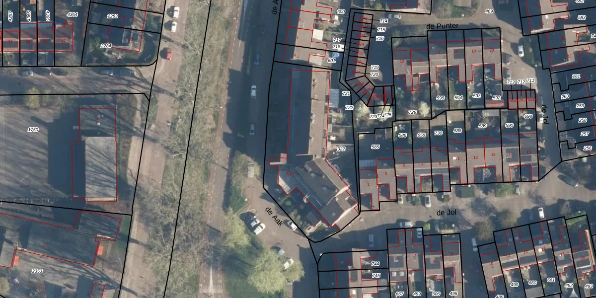 de Aak 9 is gelegen op kadastraal perceel BAA01N322. Deze kadastrale aanduiding is uniek en wordt gebruikt door het Kadaster om eigendomsrechten en andere zakelijke rechten vast te leggen. Het perceel maakt onderdeel uit van de kadastrale gemeente Baarn.