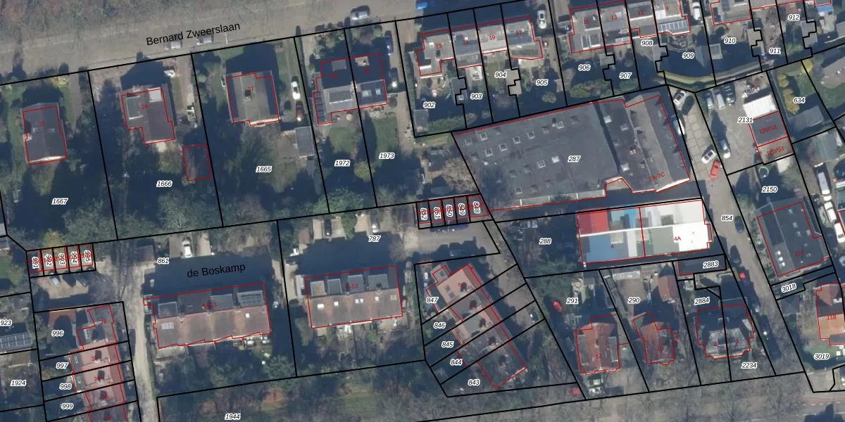 Gebruik de zoekbalk of klik op een perceel voor informatie over de adressen binnen dit perceel.