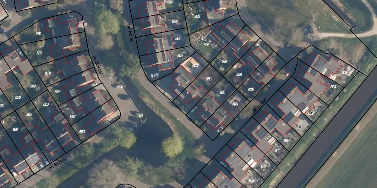 Het perceel waarop de Botter 35 staat heeft een oppervlakte van 282 m². Dit is een middelgroot perceel. De perceeloppervlakte wordt geregistreerd door het Kadaster. Gedetailleerde informatie over de maten van dit perceel kunt u vinden in het rapport Kadastrale kaart met maatvoering van de Botter 35.