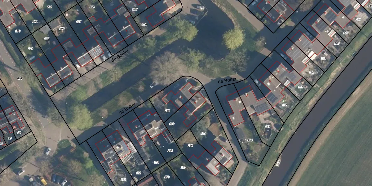 Het perceel waarop de Botter 5 staat heeft een oppervlakte van 346 m². Dit is een groot perceel. De perceeloppervlakte wordt geregistreerd door het Kadaster. Gedetailleerde informatie over de maten van dit perceel kunt u vinden in het rapport Kadastrale kaart met maatvoering van de Botter 5.