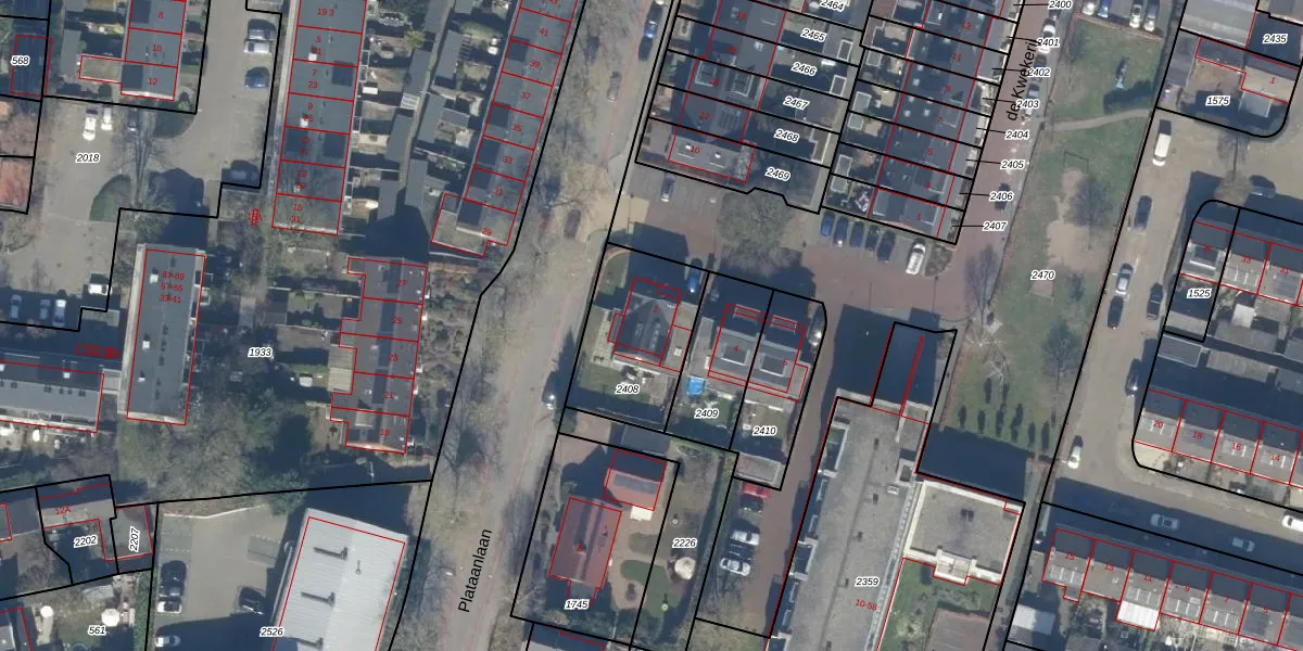 Gebruik de zoekbalk of klik op een perceel voor informatie over de adressen binnen dit perceel.
