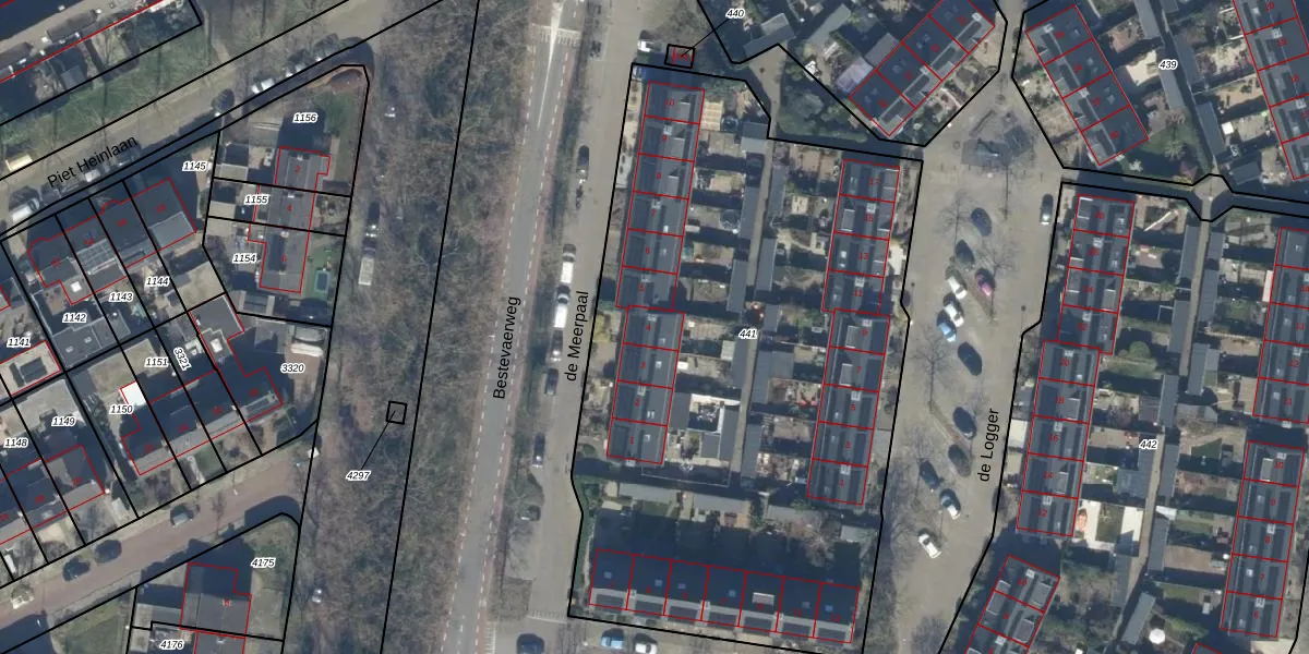 Het perceel waarop de Meerpaal 4 staat heeft een oppervlakte van 3760 m². Dit is een zeer groot perceel. De perceeloppervlakte wordt geregistreerd door het Kadaster. Gedetailleerde informatie over de maten van dit perceel kunt u vinden in het rapport Kadastrale kaart met maatvoering van de Meerpaal 4.