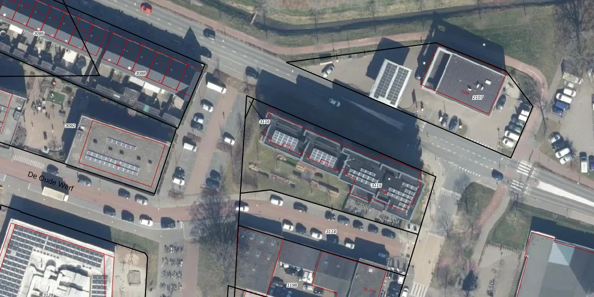 Het perceel waarop De Oude Werf 12 staat heeft een oppervlakte van 1588 m². Dit is een zeer groot perceel. De perceeloppervlakte wordt geregistreerd door het Kadaster. Gedetailleerde informatie over de maten van dit perceel kunt u vinden in het rapport Kadastrale kaart met maatvoering van De Oude Werf 12.